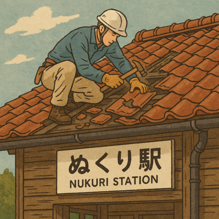 【静岡県抜里駅】台風15号による屋根被害復旧工事|大井川鐵道様からのご依頼