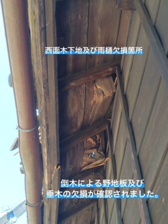 雨樋(あまどい)、野地板(のじいた)、鼻隠しなど、屋根全体に想像を超える被害が発生していました。