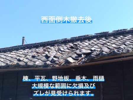 実際に現場へ伺ってみると、倒木の影響で瓦はもちろん、