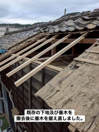 古い垂木を撤去し、同寸法の木材で新しい垂木を据え直しました。
