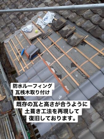 当時の屋根は「土葺き工法(どぶき)」という、土を使って瓦を固定する伝統工法で施工されていました。