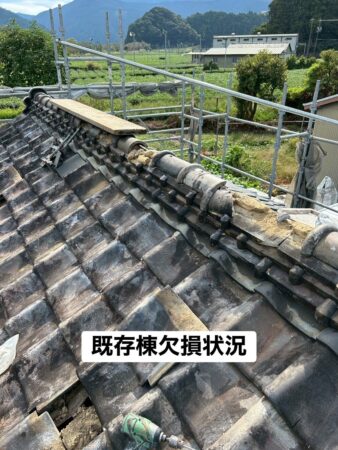 屋根の最上部(棟部分)も、予想以上の割れが多く見られました。