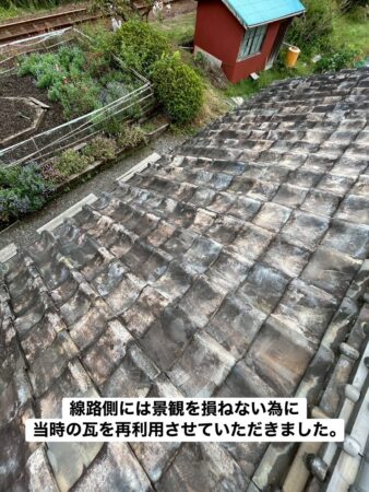 新しい瓦が目立たないよう、表面には当時使用されていた瓦を移設。