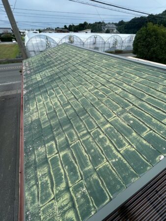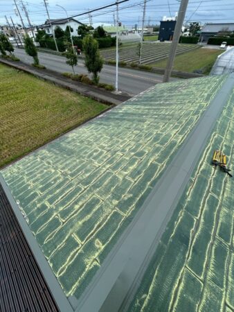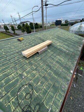既存の屋根材には以前塗装を施した形跡がありましたが、塗膜の劣化が進み、塗料が剥がれ落ちていました。
