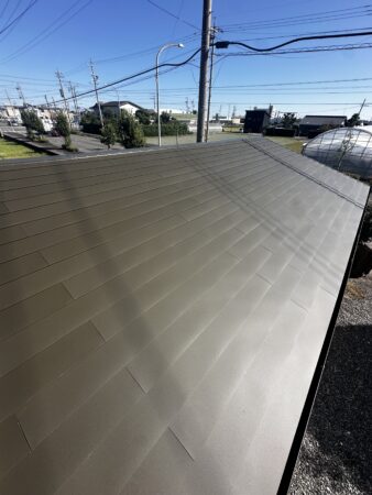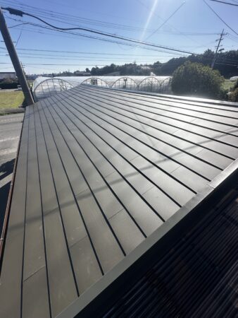 下地処理後、横葺きガルバリウム鋼板で屋根をカバーしていきます。
