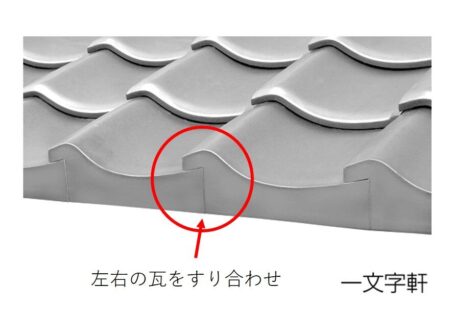 こちらのお宅の軒先(屋根の先端)は、一文字軒瓦という格式の高い瓦で仕上げられていました。