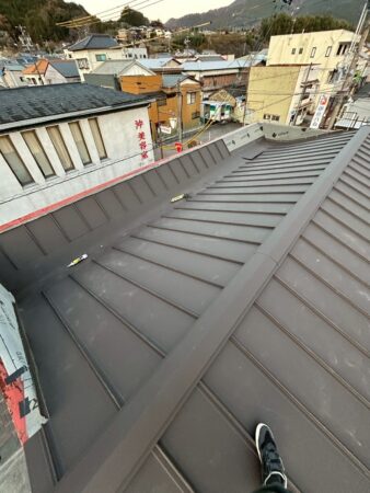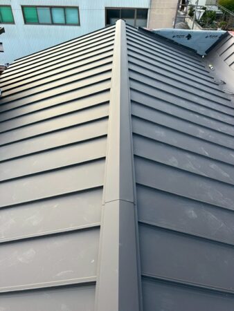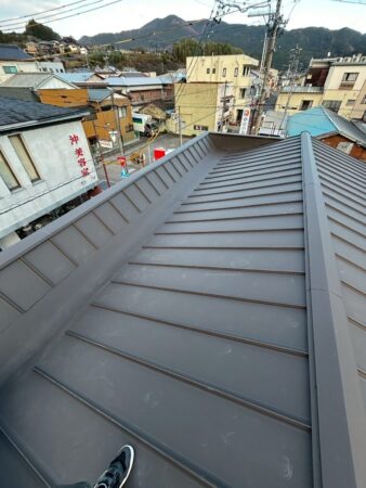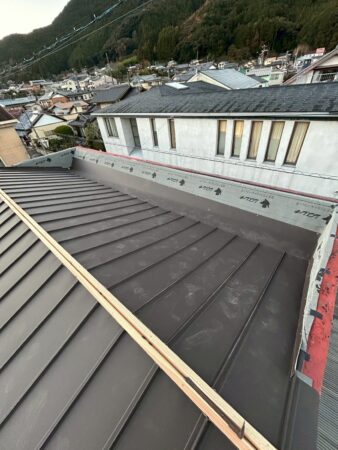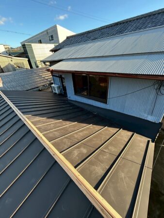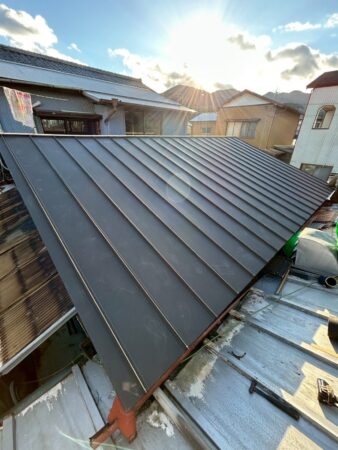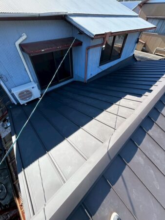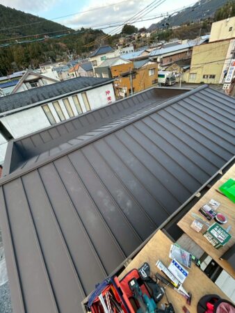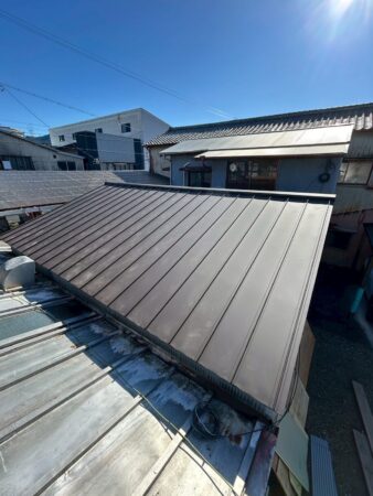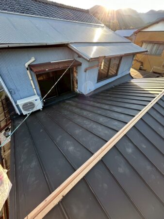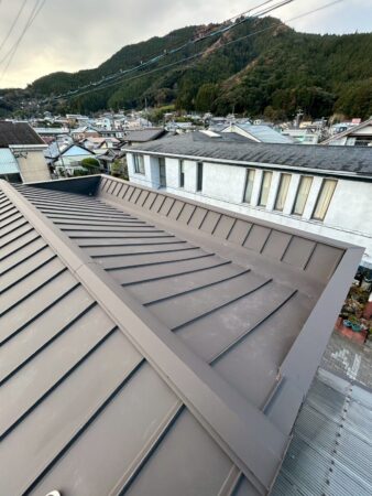 先日、川根町にて鉄板小波屋根から立平板金葺きへのカバー工法工事が無事完了いたしました。