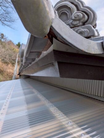 今回の屋根では、軒先部分にも漆喰が施工されていました。