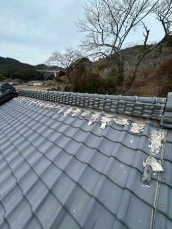 既存の屋根漆喰は厚塗り状態|すべて撤去してから施工